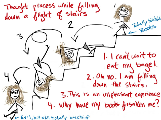 Where did it all go so wrong? One minute I was gracefully coming down the stairs, the next I was a shaking mess in a ball on the floor at the bottom – although my first thought (while breathing though the pain) was ‘ohmigod, please don’t let anyone have seen that! And please let my shoes be okay!’